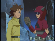 Doch in diesem Moment gibt es einen Stromausfall und Team Magma taucht auf und zwingt Professor Olden mit ihnen zu den Ruinen nach draußen und eilen Professor Olden zur Hilfe.