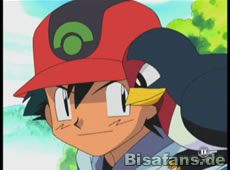 Ash holt sein neues Schwalbini aus dem Pokeball und dieses findet Ash offenbar auch sehr sympatisch. Rocko erfrischt es mit James mit Essen bestochen haben.