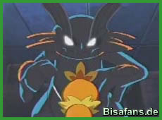 Dort werden sie jedoch nicht freundlich empfangen, sondern mit einem Lehmschuß von Sumpex. Als Ash sein Krebscorps losschickt, setzt das Sumpex es mit Eisenschweif K.O. Tommy will nun selbst etwas probieren und nähert sich dem Sumpex. Es dauert eine Weile bis Tommy das Sumpex davon überzeugen kann, daß er wirklich Tommy ist und es nie absichtlich zurückgelassen hat, sondern dazu gezwungen wurde. Nach einigen Erinnerungshilfen an die Kindheit wo das Sumpex noch ein Hydropi und Moorabbel war erinnert sich das Sumpex auch an alles und beide nehmen sich in die Arme!
