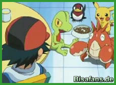 Am Ende entscheidet sich die junge Trainerin für das kleine Hydropi. Der ehemals skeptische Vater hat nach dem Kampf gegen Team Rocket ein vollig neues Verständnis von Pokémon und bittet Schwester Joy um das Geckarbor. Dieses schaute schon traurig weil es niemand haben wollte. Auch das Jungglut bleibt nicht alleine – Schwester Joy ist von ihm so begeistert, daß sie an eine Klippe und ruft seinem zukünftigen Pokémon zu, daß er es bald holen wird. Wir werden sehen.