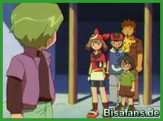 In der Kabine muß Maike vor Traurigkeit weinen. Ash, Rocko und Max trösten sie etwas, was jedoch nicht wirklich klappt. Dabei verfolgen sie Drews Kampf gegen Robert in der nächsten Runde. Dabei tritt er mit seinem Roselia gegen ein Milotic an. Er an Robert.