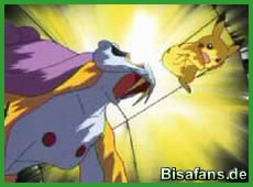 Nun ist Magneton mit einer Blitzkanone an der Reihe. Pikachu kontert mit einem Donner, der wiederum Magneton sofort K.O. Dynamo-Orden.