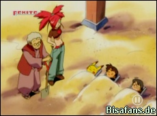 Natürlich nehmen aber alle die Verfolgung auf. Als Team Rocket mit einem Heißluftballon verschwinden will, schickt Mr. Moore sein Wingull los um diesen zum Absturz zu bringen. Am Boden gibt es dann noch einmal ordentlich Ärger von Mr. Moores Tornupto. Jessie und James Vipitis und Tuska haben keine Chance und bekommen eine saftige Abreibung.