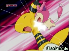 Doch in diesem Moment kommt unerwartete Hilfe von Walter und Watt, denen es gelingt mit Hilfe von Frizelblitz und Ampharos Team Rocket unschädlich zu machen und alle Pokémon zu retten. Die finale Abreibung bekommt Team Rocket kurz darauf von Frizelblitz, Ampharos und Pikachu.