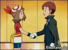 Timmy gratuliert Maike und Frau Grimm gratuliert Timmy. Es kommt sogar noch besser – sie will Timmy ab jetzt auch mit Pokémon trainieren lassen! Drew, der das Turnier nur als Zuschauer begleitete, kann es kaum fassen, dass Maike das Phantom besiegen konnte und nun auch noch ein neues Band gewonnen hat. Aber dies ist nicht aller Tage abend und Drew wird sich sicher bald wieder mit Maike messen können.
