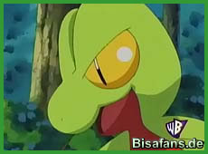 Besorgt klettert er auf den Baum und fragt Geckarbor, was ihm fehlt. Dieses wendet sich jedoch ab und kümmert sich nicht weiter um Ash. Während sich die Anderen unten auch wundern, kommt Krebscorps, nimmt Anlauf und düst den Baum hoch. Oben rammt es Ash weg und versucht mit Geckarbor zu reden. Viel mehr Glück als sein Trainer hat es jedoch nicht, wodurch es wütend wird, abrutscht und auf Ash's Kopf landet. Max meint, dass man sich um Geckarbor Sorgen machen muss, Ash jedoch glaubt, dass es seinem Pokémon gut geht und vielleicht nur keine gute Laune hat.