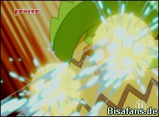Noch während sich alle Pokémon über Reptains super Leistung freuen, taucht Team Rocket auf und fängt alle Pokémon in einem Netz. Dank Reptains Laubklinge kann es jedoch alle befreien und Team Rocket fliegt nach einigen Attacken von Reptain chancenlos davon. Für Reptain gibt es eine kräftige Runde Lobpreisungen. Qurtel kommen sogar die Tränen.
