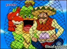 Poncho und Kappalores haben ein schlechtes Gewissen wegen den gewonnenen Sandwiches und beschließen unsere Freunde dafür zu einer Runde Cheeseburger einzuladen. In diesem Moment taucht aber Krebscorps auf und fordert einen Rückkampf. Poncho hat nichts dagegen, will aber zuerst etwas essen. Leider mischt genau jetzt Team Rocket wieder mit und schnappt sich Poncho und Kappalores mit einem Netz.