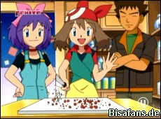 Maike, Kelly und ihre Mutter sind kurz darauf im Laden und mixen mit Hilfe von Beeren-Mixern Poke-Riegel. Dabei lernt Maike, dss man beim Poke-Riegel-machen auch die eigene Intuition verwenden muss. Das gefällt Maike sehr gut und sie mixt sich einen Schwung Poke-Riegel. Leider sind die ersten 5 Poke-Riegel ein Desaster. Doch Maike gibt nicht auf und Eneco, Papinelle, Bisasam und Jungglut werden zu mehr oder weniger freiwilligen Versuchskaninchen bei der Suche nach dem richtig leckeren Poke-Riegel.