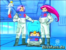 Doch unsere Freunde sind nicht alleine da – auch Team Rocket ist anwesend und beobachtet das Raumfahrtzentrum. Mauzi plant für den Boss Giovanni die Rakete zu klauen um dann über Planeten zu herrschen. Jessie und James finden die Idee auch toll.