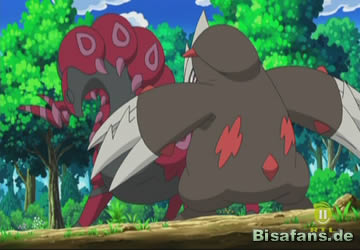 Durch die plötzliche Explosion einer von Milzas abgefeuerten Drachenwut-Attacken wird die Gruppe schnell alarmiert und eilt zum Ort des Geschehens. Es kommt zur ersten Konfrontation zwischen den Helden und Cerapendra, bei der das Käfer-Pokémon die vernichtende Gewalt seiner Toxin-Attacke unter Beweis stellt. Die ersten Konterversuche durch Serpifeu und Vegimak erzielen leider nicht den erwünschten Effekt und heizen das in Rage geratene Käfer-Pokémon nur noch weiter an. Lilia greift daraufhin – ein wenig zögernd – in das Kampfgeschehen ein und schickt Stalobor, ein weiteres ihrer Pokémon, in den Kampf. Das Untergrundpokémon scheint gegenüber seiner Trainerin aber recht abweisend zu sein und zeigt dieser nur die kalte Schulter. Selbst das flehende Appellieren Lilias an Stalobors bleibt ohne Erfolg. Man greift kurzerhand auf einen anderen Plan zurück und schickt Pikachu, Floink und Vegimak ins Kampfgeschehen. Durch die vereinte Kraft der drei Freunde gelingt es ihnen, für die notwendige Verwirrung und Ablenkung zu sorgen, sodass sich Lilia die Möglichkeit bietet, ihr Pokémon aus den Fängen Cerapendras zu befreien. Kaum aber hat Milza wieder festen Fuß unter den Füßen, wendet sich Cerapendra ihnen wieder zu; bereit, seinen nächsten Angriff zu starten.