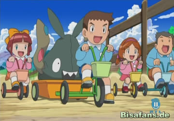 Die Reise nach Septerna City neigt sich mit jedem weiteren ihrer Schritte langsam aber sicher ihrem Ende zu. Doch noch ist die ersehnte Arenaherausforderung am fernen Horizont nicht zu sehen. Geduldig sieht man den kommenden Ereignissen froh und gelassen entgegen. Von einer ruhigen Reise kann aber kaum die Rede sein: Nichts ahnend kommen Ash, Pikachu, Benny und Lilia plötzlich ein kleines Heer kleinwüchsiger Kinder auf ihren Dreirädern entgegen, die die einallreisenden Trainer auf ihrer Fahrt ins Blaue regelrecht überrollen, nicht aber ohne noch ein, zwei Schlammkugeln als Abschiedsgruß da zu lassen. Ein bislang Ash noch unbekanntes Pokémon, thronend auf einem von den Kindern gezogenem Hänger und das ganze Schauspiel sichtlich genießend, entreißt auf der Durchfahrt dem völlig perplexen Ash seine Mütze und lässt diesen mitsamt seiner Freunde schlammbesudelt zurück.