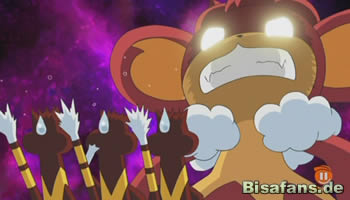 Ein klein wenig frustriert ist Lilia über den Ungehorsam ihres Pokémons schon, gleichzeitig nimmt sie es aber auch gelassen, schließlich gehört zum Trainerdasein mehr als nur kämpfen. Sein Pokémon auch auf den richtigen Weg zu bringen, ist auch eine Aufgabe, die es in dieser Rolle zu bewältigen gilt. So stehen sich Bell und Lilia zum dritten Mal in Folge gegenüber, Ausgangssituation wie zu Beginn: Ferkokel, energiegeladen und heiß auf seine Revanche, gegen Emolga, des Kämpfens mehr als nur überdrüssig und gelangweilt. Wie zu erwarten war, türmt Lilias Pokémon auch dieses Mal durch den Einsatz von Voltwechsel aus den Kampf und Ashs Pokémon Serpifeu taucht unfreiwillig auf der Bildfläche auf. Von Emolga allerdings fehlt jede Spur.