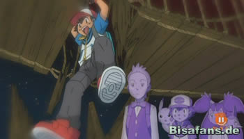 Ein unerwartetes Klingeln an der Haustür unterbricht die Unterhaltung, bei der man so richtig ins Schwärmen geriet, plötzlich. Zwei Personen, die sich als Angestellte der Weltraumbehörde zu erkennen geben, beten den Professor noch auf der Schwelle seiner Haustür darum, als führender Kopf im Bereich der Ufologie an einem ihrer neusten Projekte teilhaben zu dürfen; eine Kostprobe als Überzeugungsangebot wird gleichzeitig angeboten. Euphorisch wie man ist, möchte man sich diese vielleicht einmalige Gelegenheit im Leben nicht entgehen lassen. Als man sich dann aber plötzlich von einem elektromagnetischen Feld gelähmt auf den Boden wieder findet und Pygraulon in einen undurchdringlichen Käfig gesperrt wird, ist schnell klar, mit wem man es zu tun hat. Jessie und James schenken sich die übliche dramatische Vorstellung und verabschieden sich schlichtweg mit einem dankbaren Adieu – Pygraulon im Gepäck nicht zu vergessen. Benny erreicht als erstes einen seiner Pokébälle und ruft Lithomith auf den Plan, welches die Apparatur, von der das lähmende Energiefeld ausstrahlt, kurzerhand in seine Einzelteile zerlegt.
