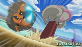 In seiner Uraufführung beweist Luke, dass er nicht nur geschickt den Umgang mit Filmklappe und Kamera beherrscht. Seine Inszenierung für diesen Drehtag endet damit, dass er und Golbit seine Vorrundengegner spektakulär aus dem Turnier werfen. Ähnlich ergeht es auch Lilia, die mit Emolga für reichlich Wirbel auf dem Kampffeld sorgt und dank Anziehung leichtes Spiel mit ihrem betörten Gegner hat.