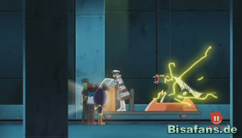Zum rechten Zeitpunkt treffen endlich Ash, Benny, Lilia und die beiden Metromeister auf einem Nebengleis am Schauplatz des Geschehens ein und müssen machtlos mit ansehen, wie der führerlose Waggon mit ihren Pokémon-Freunden auf dem Dach aus der Luft tyrannisiert wird. Ash, Benny und Lilia fassen den Entschluss, dass sie unbedingt auf den Waggon zu ihren Freunden vorstoßen müssen. Die Zeit für Gegenargumente fehlt und von einer anderen Alternative kann nicht die Rede sein. Beide Metromeister willigen in dieses gewagte und doch beherzte Himmelfahrtskommando schließlich ein. Durch die telekinetischen Kräfte von Hins Partner-Pokémon, Skelabra, gelingt es den drei Menschen, endlich zu ihren vermissten Pokémon vorzudringen. Die Wiedervereinigungsfeier muss aber leider auf sich warten lassen, denn ist man längst nicht aus der Gefahrenzone entkommen. Team Rocket bleibt weiterhin unnachgiebig dem Waggon mit ihrem Raubgut auf den Fersen, während sich Doktor Zager abermals aus der Luft nähert und mit einem kolossalen Fanghaken den Eisenbahnwagen zum Stillstand bewegen will. Der Rückstoß der vereinigten Attacken lässt den Abstand zu den Verfolgern erstmals wieder wachsen, doch lediglich für wenige Augenblicke, denn die Jäger holen abermals wieder auf. Zeit für den ersten Gegenangriff, der über das Schicksal aller Beteiligten entscheiden soll. Eine gezielte Paarung von Blättersturm und Elektroball bedeuten für die lästige Schmeißfliege und seinem Fanghaken das Aus – Doktor Zager beugt sich gezwungenermaßen und muss für seine eigene Sicherheit Abstand gewinnen, womit nur noch Jessie, James und Mauzi in ihrem Geisterzug übrig bleiben; für die beiden Metromeister endlich die Gelegenheit, sich für die erfahrene Demütigung zu revanchieren. Skelabra entbietet die verbindlichsten Grüße und zerlegt den Geisterzug mit gezielten Angriffen in seine Einzelteile.
