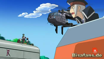Ein brennendes Katz-und-Maus-Spiel entfacht: Das Pokémon-Gespann flüchtet auf das Dach ihres Fahrzeugs und halten Team Rocket mit einigen gewieften Aktionen, bei denen es ihnen sogar gelingt, auf eine andere Schiene zu wechseln und so ihre Verfolger zu überholen, auf Distanz zu halten. Der hart erarbeitete Vorsprung schwindet allerdings zunehmend dahin. Ein weiteres Problem bereitet der in den Diensten vom Team Rocket stehende Doktor Zager, der sich mittlerweile auch der Verfolgung angeschlossen hat und Jessie, James und Mauzi aus seinem Helikopter Luftunterstützung gibt.