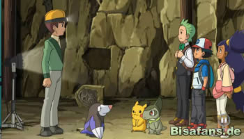 Da das Höhlensystem unter dem Wendelberg jedoch wie ein Labyrinth ist, verlaufen sich Ash, Benny und Lilia leider ein wenig. Gerade als man umkehren möchte, kann Lilia etwas hören, was das Trio letztlich zu einem Archäologen namens Ferris führt, der gerade mit seinem Rotomurf ein Fossil ausgegraben hat. Seine Kollegin, Sierra, die kurz darauf erscheint, ist weniger glücklich über den unangekündigten Besuch und scheint mit Ferris auch einige Unstimmigkeiten zu haben. Als Sierra und Ferris unsere Freunde nach draußen führen, freuen sich die anderen Arbeiter sehr über den sensationellen Fund von Ferris, da ihm zuvor niemand glauben wollte, dass es hier Fossilien geben könnte.