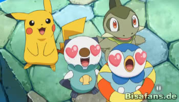 An einem Steg besteigen unsere Freunde ein Schnellboot, mit dem Johann alle zur Onix-Insel bringt. Als sich Meloetta enttarnt und allen anschließt, freuen sich Plinfa und Ottaro riesig, beginnen aber auch gleichzeitig mit ihrer Fehde... Während der Fahrt fragt Ash Johann, ob er mehr über das besondere Onix weiß. Dieser kann jedoch nur erzählen, dass es viele Onix auf der Insel gibt, eines davon in irgendeiner Art und Weise besonders sein soll. Wer es sieht, soll der Legende nach, Glück haben. Na wenn das nicht vielversprechend klingt.