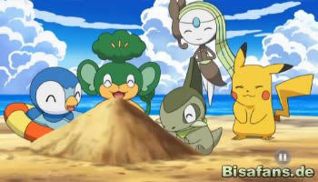 Auf der Onix-Insel angekommen beginnt Ash der Bauch zu knurren, so dass Benny mit den Vorbereitungen zu einem Essen startet. Während Benny kocht, toben sich alle unsere Freunde und Pokémon am Strand aus. Abgesehen von einer kleinen Streitszene zwischen Ottaro und Plinfa um Meloetta passiert nichts wirklich wichtiges. Erst beim Essen und dem Loben von Benny für seine Kochkunst, erwähnt Lucia Rocko. Rocko studiert aktuell um Pokémon-Arzt zu werden und war damals, als er mit Ash und Lucia reiste immer derjenige, der sich um das Kochen kümmerte. Während unsere Freunde so plaudern, kommt es zwischen Ottaro und Plinfa erneut zu einem Streit um Meloetta, den jedoch Pikachu, Milza und Vegimak in letzter Sekunde schlichten können.