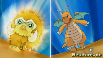 Mit einem Eiszahn von Mamutel will Lucia den Kampf zu einem Ende bringen. Lilia gibt schon keinen Befehl mehr, da sich Dragoran ohnehin der Attacke frontal stellen wird. Diesmal ist es jedoch besonders gefährlich, da Dragorans Hände durch den Griff auf den Eiszahn zu gefrieren drohen. Im letzten Moment hebt Dragoran ab und startet einen Drachenstoß-Angriff aus der Luft, der Mamutel direkt besiegt. Was für ein spektakuläres Ende! Lilia selbst kann sich nur bedingt freuen, da sie praktisch keine Rolle bei diesem Sieg spielte, doch als Lucia ihr gratuliert, schaut nur Dragoran etwas verwundert.