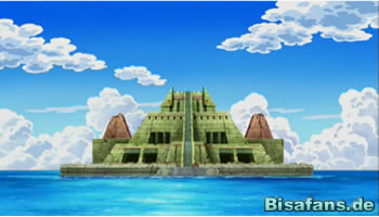 Während sich das Schiff unserer Freunde dem Tempel nähert, zog dort ein Sturm auf und ein Lichtstrahl schaffte eine Art Portal im Himmel. Aus insgesamt drei dieser Portale steigen nun Boreos, Voltolos und Demeteros auf. An dieser Stelle sei angemerkt, dass keiner unserer Freunde in den Pokédex schauen braucht, um diese zu erkennen! Team Rocket Boss Giovanni befiehlt dem Wahrspiegel nun die wahre Form der drei Pokémon zu offenbahren. In diesem Moment gelingt es Pikachu den Energiekäfig mit mehreren Eisenschweifen aufzubrechen und sich sowie Ash zu befreien. Beide eilen sofort zu Meloetta, um es aus seinem Gefängnis zu befreien, doch Jessie und James stellen sich mit Makabaja und Fleknoil in den Weg. So gelingt es ihnen, Ash und Pikachu von der Plattform des Tempels zu werfen. Ash und Pikachu haben jedoch Glück, da das Golgantes von Raffael gerade vorbeifliegt und die beiden zum Rest der Gruppe bringt. Nach kurzer Absprache, ruft Cynthia ihr Knakrack, Lilia ihr Dragoran, Benny sein Vegimak und alle machen sich auf den Weg zur oberen Plattform des Tempels um Giovanni zu stoppen. Dragoran hat es hierbei mal wieder besonders eilig und stürmt alleine vor. Golgantes mit Vegimak und Fasasnob mit Pikachu fliegen Dragoran hinterher.