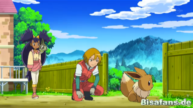 Ash, Lilia und Benny sind noch immer auf dem Weg nach Grünfeste, wo die Einall-Liga stattfinden soll. Doch der Bergpfad, den die Freunde benutzen, wird von einem Felshaufen blockiert. Benny schlägt daher vor, einen anderen Weg zu suchen, da es scheinbar kein Weiterkommen gibt, doch Ash beginnt einfach, über die Felsen zu klettern, wobei sich Lilia ihm anschließt. Doch dann kommt der ganze Haufen ins Rollen, sodass die Steine zusammen mit Ash, Lilia, Pikachu und Milza den Steilhang neben dem Pfad hinunter stürzen. In dieser Situation taucht plötzlich ein Evoli, gefolgt von einem unbekannten Trainer auf. Der Trainer ruft sein Psiana aus einem Pokéball und befielt ihm, Psychokinese einzusetzen, um den Fall der beiden Freunde und ihrer Pokémon aufzuhalten und so somit zu retten.