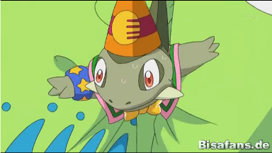 Dieses ist nach wie vor auf der Jagd nach dem Ballon, als dieser jedoch davonfliegt, bemerkt es, dass es ganz allein ist und den Rückweg nicht kennt. Auch kann es aufgrund der Menschenmenge seine Freunde nicht mehr sehen. Schließlich bemerkt es eine Gruppe von Menschen, die einen Mann namens Russet feiern, welcher ebenfalls an der Einall-Liga teilnimmt und es durch die ersten Runden geschafft hat. Als die Gruppe weiterzieht, folgt Milza ihnen und wird von einer älteren Dame der Truppe bemerkt, welche Milza daraufhin mitnimmt. Unterdessen haben die Ash und die anderen eine Suchaktion gestartet.