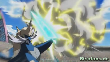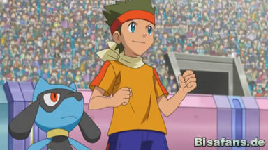 Riolu ist am Boden und es sieht so aus, als würde Ash gewinnen. Dennoch steht es mit letzter Kraft auf und beginnt zu leuchten. Die Trainer können es nicht glauben, dass Riolu sich zu Lucario weiterentwickelt. Das erstaunt nicht nur Ash und die anderen Trainer, sondern auch das ganze Publikum, womit die Episode endet.
