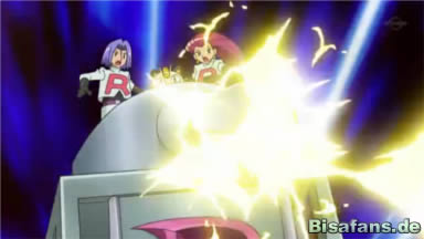Nach Team Rockets üblichem Spruch, erklären sie den Vier ihren Plan und zögern nicht ihn sogleich in die Tat umzusetzen. Über die Kraft der Voltilamm schießen sie aus ihrem Gerät einen starken Elektrostrahl auf Pikachu ab, Ampharos springt jedoch dazwischen und versucht ihn mit einem Donnerschock zu blocken, was aufgrund der Stärke des Angriffs nicht gelingt. Sofort wird ein neuer Strahl abgeschossen, den Pikachu jedoch mit Donnerblitz parieren kann. Es folgt ein weiterer Angriff, welcher stärker erscheint, Pikachu gerät in Bredouille, doch im letzten Moment kann es die Elektroattacke mit aller Kraft auf Team Rocket zurückwerfen, was eine kleinere Explosion zur Folge hat.