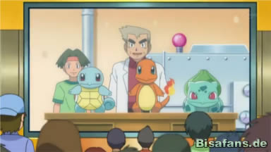 Gemeinsam mit N erreichen Ash, Lila und Benni auf dem Weg zu den weißen Ruinen den „Kanto Markt“. Die drei laufen über den Markt, bis sie auf einem großen Bildschirm Professor Eich sehen. Er erzählt den Leuten von den drei Kanto-Startern. Auf die Bühne daneben tritt eine Frau und sagt, dass die Kanto-Pokémon endlich da sein. Glumanda tritt auf die Bühne und führt die Attacke Glut vor, dabei stößt es gegen einen Scheinwerfer, wirft diesen dabei um und verletzt sich ein wenig. Die Frau der Bühne und Ash und Co bringen es ins Pokémon Center.