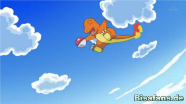 Ash fragt Glurak ob es wieder mit ihm reisen würde und Glurak sagt feuerspeiend zu!