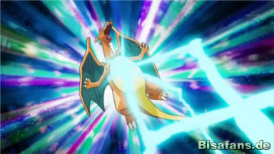 Die Vier treffen sich auf einem Kampffeld wo Ash voller Freude den Pokéball in die Luft wirft – Glurak erscheint mit einem kräftigen Schrei; mächtiger denn je. Glurak ist ebenso fröhlich wie Ash, auch Pikachu scheint begeistert zu sein. Wie immer muss Glurak Ash erstmal den Kopf verkokeln, während er es seinen Freunden vorstellt.