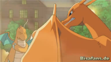 Der Kampf beginnt, beide Pokémon setzten zunächst ihren Flammenwurf ein – die Attacken treffen auf einander und es gibt eine kleine Druckwelle. Die beiden Pokémon fliegen in die Luft, Dragoran greift mit Donnerschlag und Glurak mit Flügelschlag an! Erneut treffen die Attacken aufeinander und es gibt eine Explosion, doch sofort geht der Kampf weiter, Dragoran greift mit Drachenstoß und Glurak mit Schlitzer an. Die Pokémon landen im Zuge einer Explosion wieder am Boden, beide immer noch voller Kraft.