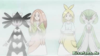 So verschwindet Team Plasma mit seinem Fluggerät, während sich die Kinder Sorgen um N machen, der sich nicht bewegt. Da zieht plötzlich Nebel auf. Maxax' Trainer und Team Rocket befinden außerhalb dieses, während die drei Freunde zusammen mit N mitten im Nebel sind, aus dem plötzlich zwei junge Frauen mit einem Morbitesse und einem Guardevoir auftauchen. Das Morbitesse setzt Konfusion ein, um N so zum Schweben zu bringen. Dann verschwinden sie wieder, ohne ein Wort zu sagen. Ash und seine Freunde folgen ihnen, ebenso Team Rocket, das die Stimmen der Kinder gehört hat.