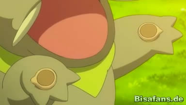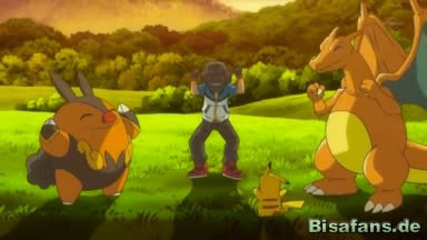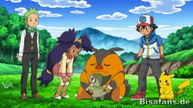Ash und Co. wollen derweil wieder aufbrechen und rufen ihre Pokémon zurück. Einzig allein Ferkorkel bleibt draußen und scheint ein Problem zu haben, da es auch nichts von seinem Fressen angerührt hat und seine Feuerangriffe ungewöhnlich schwach sind.