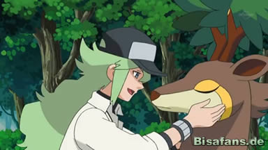 Unten fragt N Ash, warum die Pokémon ihn eigentlich so sehr mögen. Er hat auf seine Reise viele verschiedene Menschen und Pokémon gesehen, die verschiedene Beziehungen zueinander hatten. Doch Minna und Elfriede hätten so etwas nie erlebt, sie kannten nur das Leben abseits der Menschheit. Er nimmt Pikachu kurz in die Arme, dabei sinniert er, warum Pokémon überhaupt existieren, was sie den Menschen sagen möchten. Den Lichtstein nur als Forschungsobjekt zu sehen ist in seinen Augen ein Resultat dessen, dass die Menschen denken, die Pokémon wären nur zu ihren Gunsten da. Dies macht die Menschen für ihn arrogant. Ash meint jedoch, für ihn sind Pokémon einfach sehr wertvolle Freunde. Da sie immer bei ihm waren, in guten wie in schlechten Zeiten, möchte er sie besser kennenlernen, denn so kann man besser mit ihnen Freundschaften schließen. Genau das möchte er auch bei Reshiram erreichen.