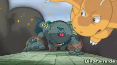 Oben wird Angie auf einmal während des Erteilens von Befehlen von Nick attackiert und an eine Wand gepinnt. Danach entpuppt sich Nick als LeBelle, dem Mitglied der Internationalen Polizei. Den verblüfften Freunden bietet sich die Zeit, eine sicherere Stelle zu suchen. Als alles gerade sich zum Besseren zu wenden scheint, greift Achromas ein und feuert den Strahl seiner Kontrolliermaschine auf die den Forschern helfenden Pokémon ab. Diese beginnen sogleich umherzuwüten, Angie und der Rüpel, der bei ihr ist, nutzen die Ablenkung, um zu entkommen. Ungern, aber sich dieser einzigen Möglichkeit bewusst, schicken Benny und Lilia Castellith und Dragoran gegen die kontrollierten Pokémon in den Kampf, wobei natürlich im Kampfgeschehen deutlich wird, dass sie deutlich in der Unterzahl sind. Team Rocket beobachtet das Spektakel weiterhin aus der Ferne, agiert aber noch nicht. N hört die Schreie seiner Freunde und Ash schlägt entschlossen vor, einen Ausweg aus der Höhle zu finden.