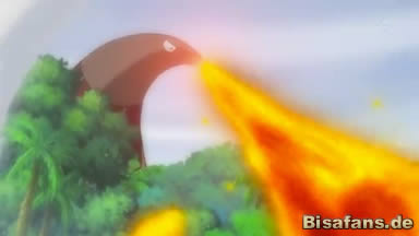 Auf der Insel angekommen, zieht Nebel auf und Pikachu und Milza scheinen unruhig. Plötzlich aber taucht ein riesiges Furnifraß auf, das sie mit Flammenwurf angreift. Dadurch kommt es zu einem Waldbrand, aufgrund dessen die Pokémon des Waldes die Flucht ergreifen. Dabei prallt Milza mit einem Tarnpignon zusammen, das darafhin Schlafpuder einsetzt. Milza schläft deshalb ein.