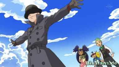 Danach setzt das Furnifraß zu einem erneuten Flammenwurf an, doch die Gestalt in Hut und Mantel, die den Freunden gefolgt ist, stellt sich vor die drei. Das Furnifraß scheint ruhiger zu werden, und plötzlich zieht für einen kurzen Moment wieder Nebel auf. Als dieser wieder verschwunden ist, sind sowohl das Furnifraß, als auch das Feuer und die Person verschwunden. Benny meint, dass alles wie eine Illusion wirkt. Lilia erwähnt daraufhin nur, dass Milza noch immer schläft und so beschließen sie, zur Hauptinsel zurückzukehren, um zum Pokémon-Center zu gehen.