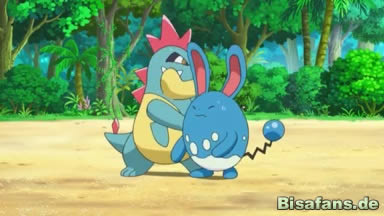 Da erklären Ashs Pokémon, dass mit netten Trainern auch viele schöne Momente möglich sind. So kommt es zu einem Streit, und Serpifeu schlägt vor, alles in einem Kampf zu klären. Die Piraten nehmen an und so kämpft Ash mit Ferkokel und Serpifeu gegen Azumarill und Tyracroc. Im Kampf müssen die Piraten schnell einige Treffer einstecken, doch schließlich wird auch Ferkokel getroffen - es kann aber weiterkämpfen. So treffen Serpifeu und Ferkokel erneut einige Male und die Piraten sind bereits sehr mitgenommen. Dennoch wehrt sich Tyracroc mit Eisenschweif, doch Ashs Pokémon können ausweichen und erneut Treffer landen, die ausreichen, um Tyracroc und Azumarill zu besiegen.