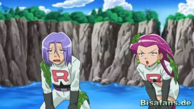 Team Rocket ruft seine Pokémon, um gegen die Freunde zu kämpfen, doch durch die vorherigen Kämpfe jedoch sind Makabaja und Fleknoil noch sehr erschöpft. Kurz und knapp werden sie von Pikachu weggeschossen, bevor Jessie und James die Möglichkeit haben, Hutsassa und Quabbel zu rufen. Anschießend betreten die Kinder und Alba den geöffneten Eingang.