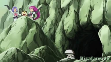 Inzwischen hat Team Rocket einen der zwei Ausgänge der Höhle blockiert und ein Gerät aufgestellt, das Schallwellen aussendet, die Pokémon dazu bringen, wegzulaufen. Beim nicht blockierten Ausgang warten die drei darauf, dass das andersfarbige Shardrago auftaucht, um es fangen zu können.
