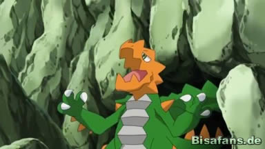 Das bemerkt Team Rocket schnell, und Mauzi geht gleich in die Höhle, um nachzusehen. Schnell läuft es aber, gefolgt von dem andersfarbigen Shardrago, wieder hinaus. Jessie und James nutzen daraufhin ihre Chance und rufen ihre Pokémon, um es zu schwächen und anschließend zu fangen. Die Geräusche des Kampfes bleiben von den Freunden und Sandra nicht unbemerkt, weshalb sie schnell auf Team Rocket treffen.