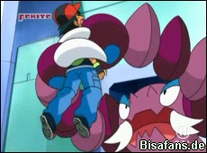 Gesagt, getan – kurz darauf startet ein Kampf zwischen Haspiror und Skorgla um Francesca zu zeigen, wie so ein Kampf aussieht. Dabei bekleckert Skorgla übrigens das neue Kleid von Haspiror (was diesem gar nicht gefällt). Nachdem dieser Kampf abgebrochen wird, stehen sich Ash mit Chelast und Francesca mit ihrem Klingplim gegenüber. Francescas Befehl einen Erstauner einzusetzen scheitern jedoch. Als Ash daraufhin Rasierblatt befiehlt, flüchtet das Klingplim. Bei der Flucht schnappt sich Team Rocket von ihrem Heißluftballon aus das inszwischen bewustlose Klingplim. Dank des Einsatzes von Haspiror und Wonneira kann Klingplim aber schnell befreit und Team Rocket besiegt werden.
