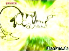 Letztlich kommt es doch noch zu einem Kampf, bei dem Pikachu und Raichu sich nichts schenken. Erst ein Donner, dann ein Voltackle und dann ein Eisenschweif. Dabei sieht es so aus, als wären die beiden Pokemoon weitestgehend ebenbürtig. Doch nach Pikachus Ruckzuckhieb legt Raichu einen Hyperstrahl an und hält Pikachu mit seinem Schwanz fest, so dass es nicht ausweichen kann. Diese Attacke trifft Pikachu so stark, dass es K.O. geht.