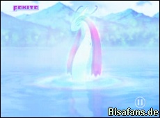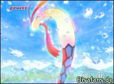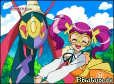 Und so beginnt wenige Momente später ein Trainingskampf zwischen Bamelin von Ash und Plinfa von Lucia. Den Anfang macht Plinfa mit einem Blubbstrahl, gefolgt von Bamelins Ultraschall. Beide Pokémon präsentieren verschiedene Attacken wie Wasserdüse oder Whirlpool, die Wassili begeistern können. Beendet wird der Kampf übrigens nicht. Statt dessen gibt es ein großes Lob von Wassili für Bamelin. Er möchte sogar, dass Ash am Wassili-Cup teilnimmt. Lucia empfiehlt Wassili hingegen auch mal mit ihrem Plinfa zu spielen und nicht nur zu trainieren. Bevor es weitergehen kann, taucht Jessie in ihrer Jesselina-Verkleidung auf um Wassili ihr Vipitis zu präsentieren. Zum Glück unterbrechen James und Mauzi den etwas peinlichen Auftritt von Jessie.