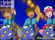 Ash, James, Jessie, Lucia, Marninus (Arenaleiter), Rocko, Schwester Joy