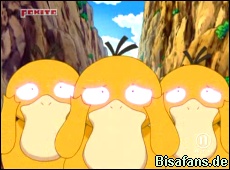 Ein möglicher Umweg ist jedoch so groß, dass Ash entschließt die Entons mit einer Rasierblat-Attacke seines Chelast anzugreifen. Als dies nicht klappt, probiert Chelast es mit Biss, doch auch dies scheitert. Nun meldet sich Plinfa zu Wort und versucht es mit Reden. Aber auch dies ist nicht von Erfolg gezeichnet – genausowenig wie der folgende Blubbstrahl oder Whirlpool von Plinfa. Selbst Rockos Versuch mit Glibunkels Giftstachel oder Ashs erneuter Versuch mit Panflams Flammenwurf scheitern. Die Psycho-Attacken der Enton wehren einfach alles ab und halten unsere Freunde auf Abstand.