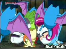 Eine verzwickte Lage, doch nun meldet sich Zyrus mit einigen merkwürdigen Kommentaren rund um Macht zu Wort. Denn die beiden Orbs sind nicht nur in Zusammenhang mit Dialga und Palkia wichtig, sondern auch in Verbindung mit den drei Hütern der Seen. Alle wundern sich etwas über die Ansprache von Zyrus, doch erst als eine Horde an Golbats hereinbricht, wird es chaotisch. Dem Skuntank von Team Galaktik gelingt es Team Rocket die Weiß-Orb aus den Händen zu reißen und damit zu entkommen :(